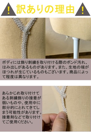◇あらかじめ取り付けてある刺繍飾りの接着が弱いものや、使用中に部分的に取れてきてしまうものがある可能性があります。接着剤などで取り付けてご使用ください。