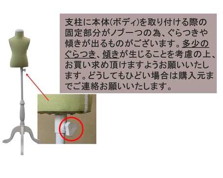◇支柱にボディーを取り付ける際、固定部分がノブ1つの為、ぐらつき・傾きが出てくるものがあります。