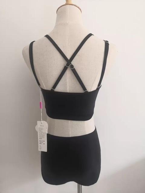 ショルダーストラップは後ろでクロスされているのでスッキリした印象に◎