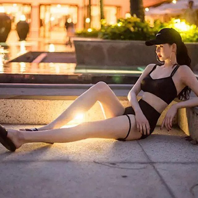 シースルー生地がセクシーな3ピースの水着。