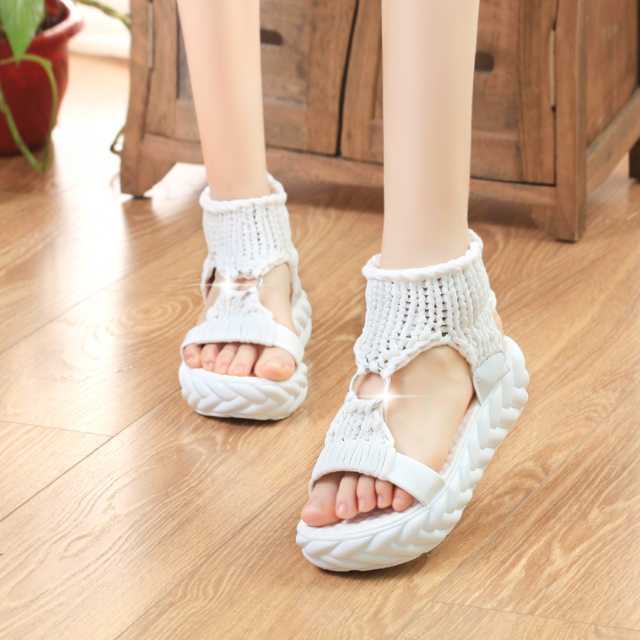 全5色 サンダル 厚底 春 夏 秋 サンダル レディース 厚底シューズ 大 厚底 スポサン ビーチサンダル ペタンコ ウール オープントゥ ウェッジサンダル キレセク
