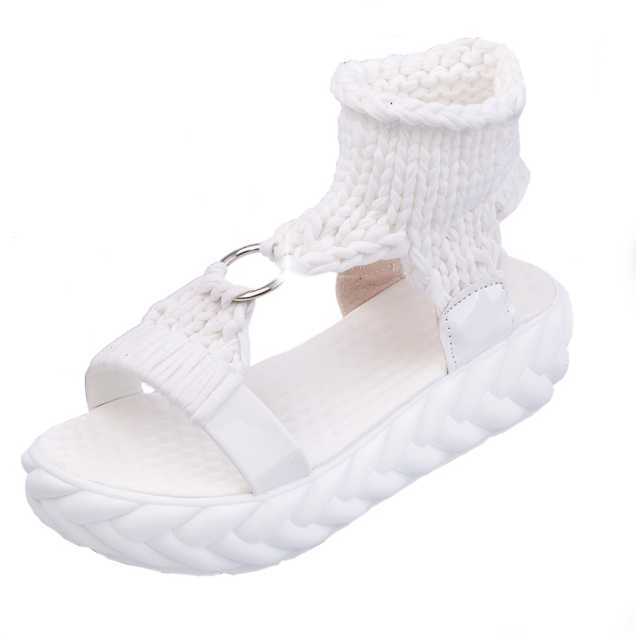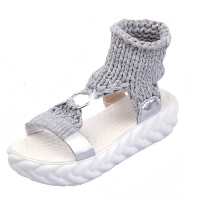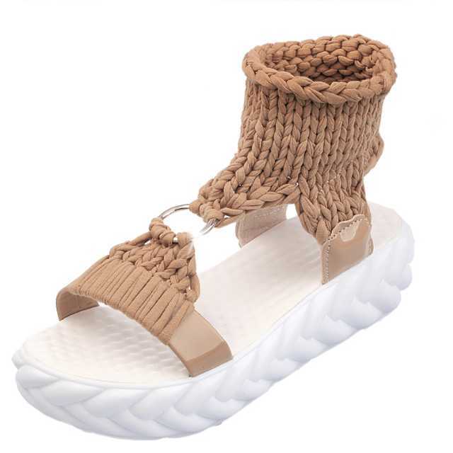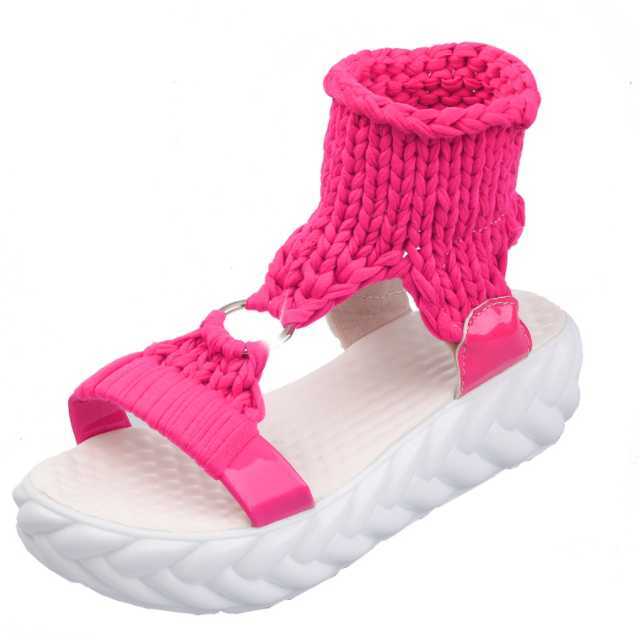 ウール素材で編み上げられたデザインがとってもお洒落なオープントゥサンダル。