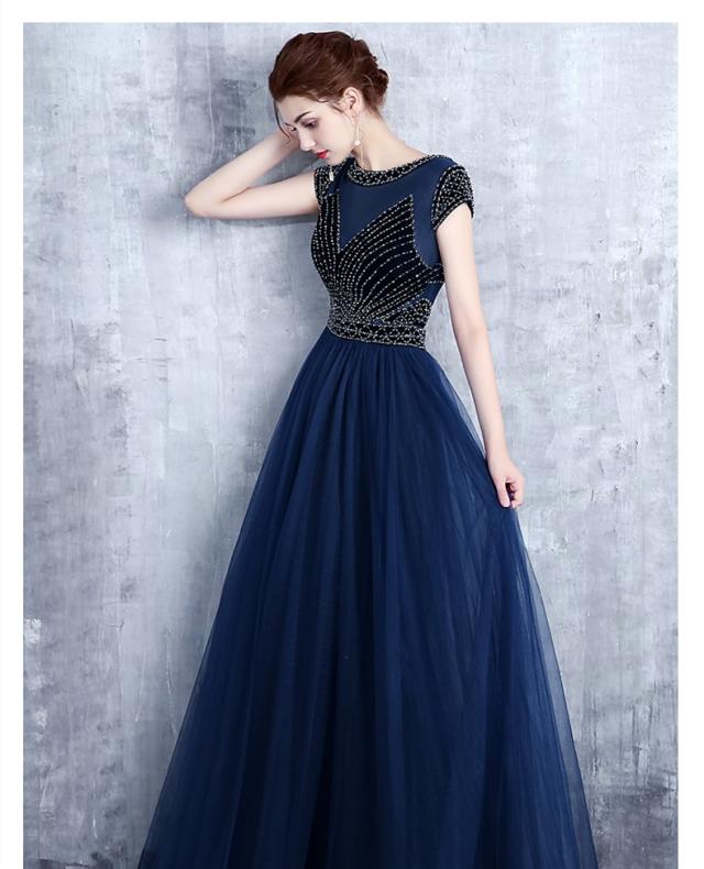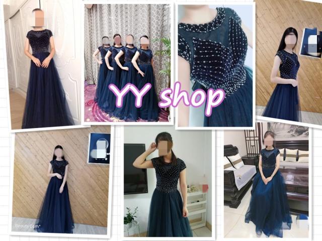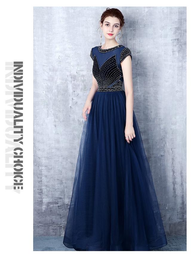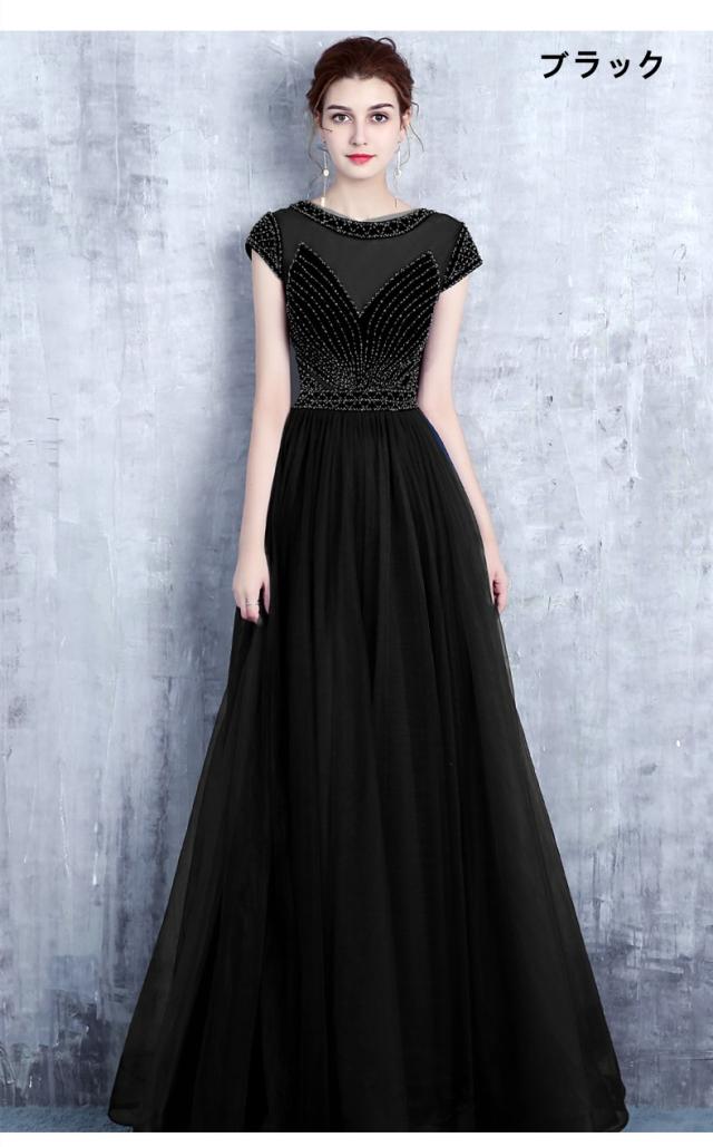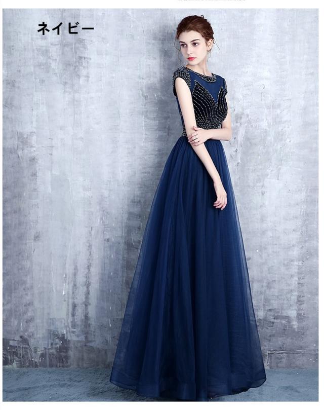 エレガント パーティドレス ロングドレス ワンピ ナイトドレス 黒 ネイビー 結婚式 二次会 発表会 演奏会 イベント 撮影 S~XXL D032