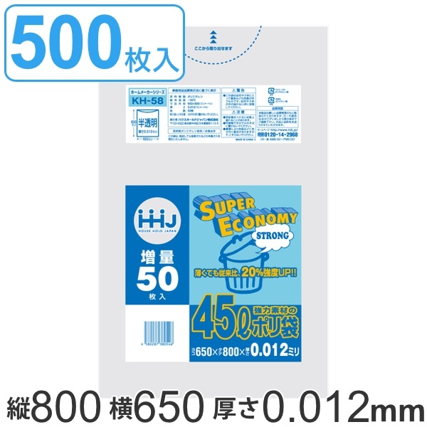 ゴミ袋 45L 80x65cm 厚さ0.012mm スーパーエコノミー 100枚入り 10袋セット 半透明 ( ポリ袋 45リットル 80cm 65cm 100枚 10袋 丈夫 キッチン 台所 ごみ袋 透明ポリ袋 小分け袋 ポリエチレン 袋 頑丈 薄手 45L )