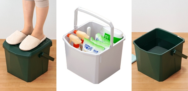 収納・踏み台・水入れ、3つの使い方ができる多機能バケツです。お掃除・洗車・レジャー・アウトドア・ガーデニングなど、様々なシーンで大活躍します。