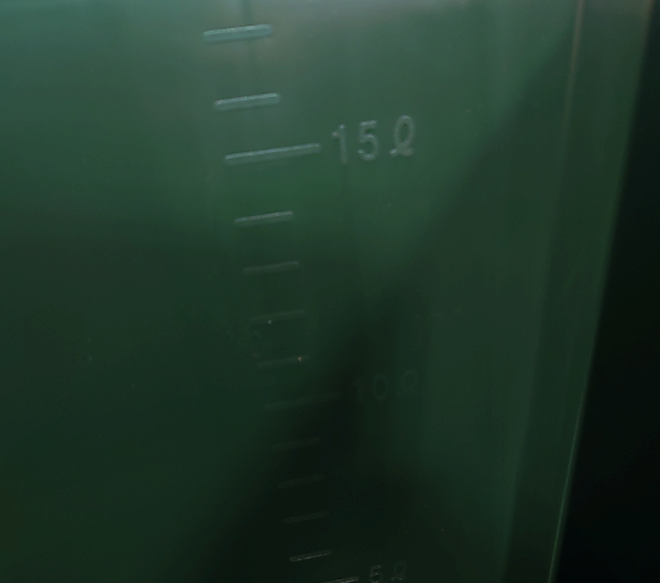 グリーンのバケツ本体には1Lごとのメモリが付いており、計量時に役立ちます。
