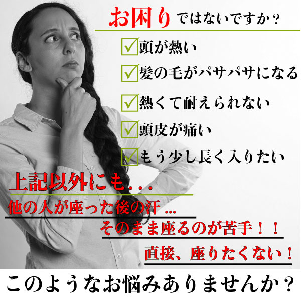 高温により頭が熱くなりすぎるのを防ぎ、のぼせ防止に効果があります。