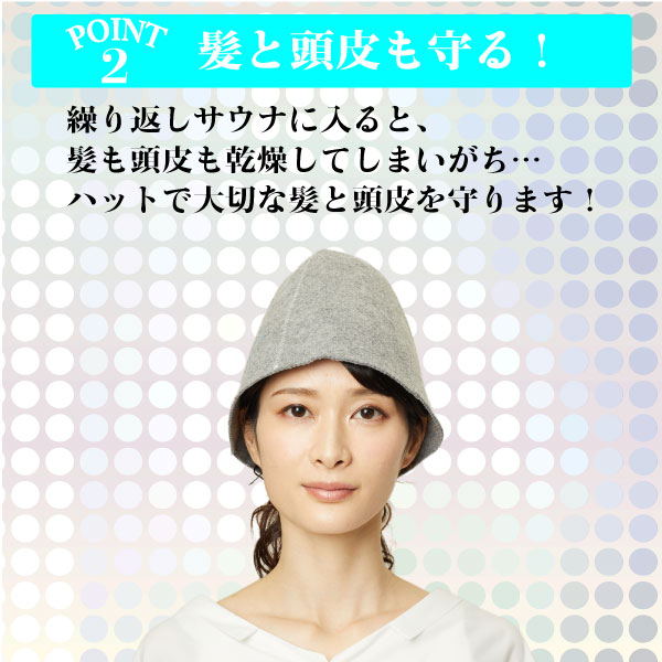 サウナハットはサウナ室内での過熱による頭皮のダメージ、髪を乾燥、