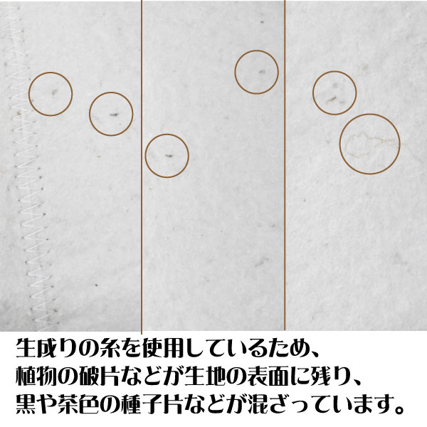 ホワイトは生成りの糸を使用しているため、植物の破片が生地の表面に残り黒や茶色の