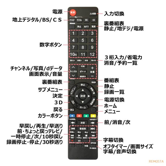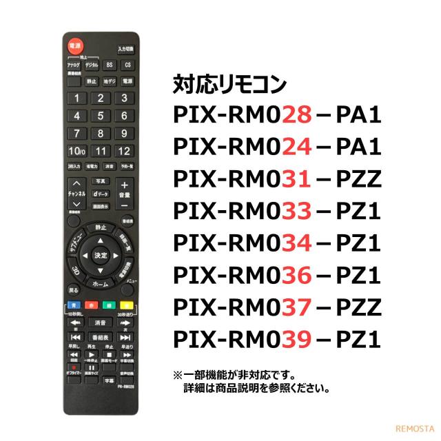 ピクセラ プロディア テレビ リモコン PIX-RM028-PA1 PIX-RM024-PA1 PIX-RM033-PZ1 PIX-RM036-PZ1 PIX-RM031-PZZ PIX-RM034-PZ1 PIX-RM037-PZZ 代用リモコン