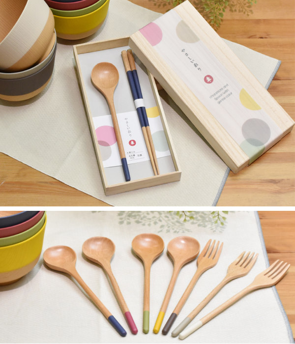 天然木に日本の伝統色を彩った「やさしい彩り」シリーズ。食卓を穏やかで温かい雰囲気にしてくれます。
