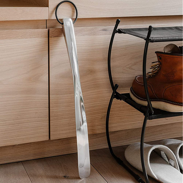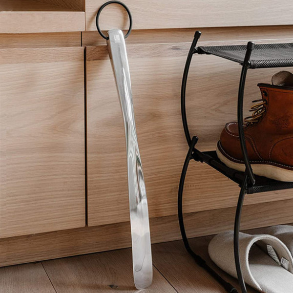 光沢があり高級感溢れるシューホーンです。アルミニウム素材を使用しているので丈夫で長く使うことが出来ます。足のかかとに沿った丸みがあるデザインでスッと履くことができます。