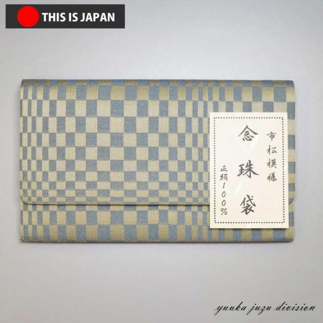 【送料無料】数珠袋/数珠入れ 名物裂 磁気留め<市松・薄緑>【仏具/お数珠/お葬式/お通夜/葬儀/法要】