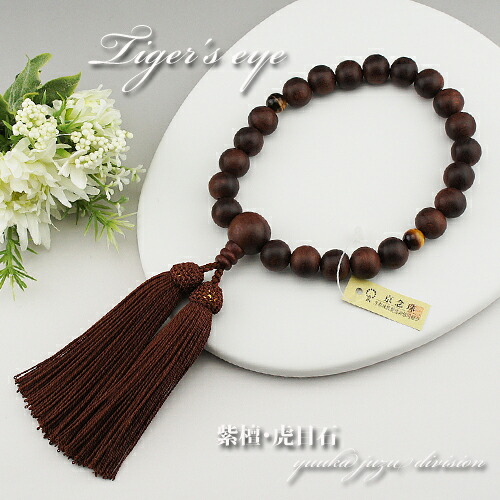 【送料無料】【高級数珠袋付に変更】【京念珠正規品タグ付】【京ふさ正規品ID付】【艶消し紫檀】22玉 二天虎目石仕立【男性用】【数珠】【念珠】