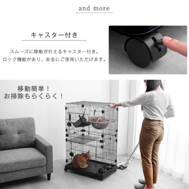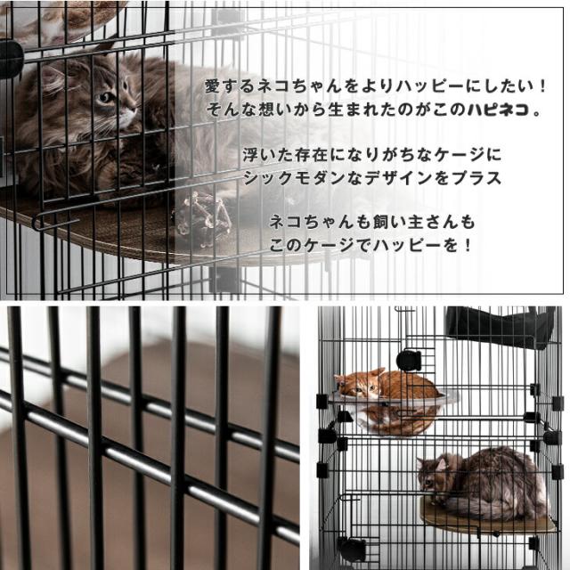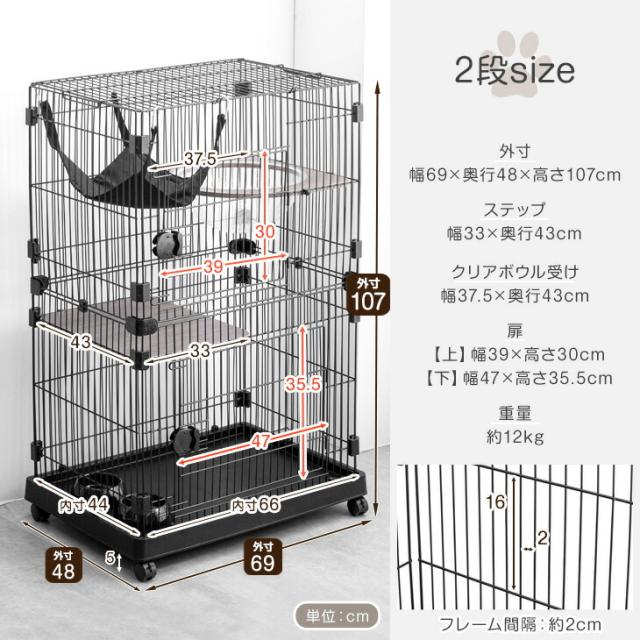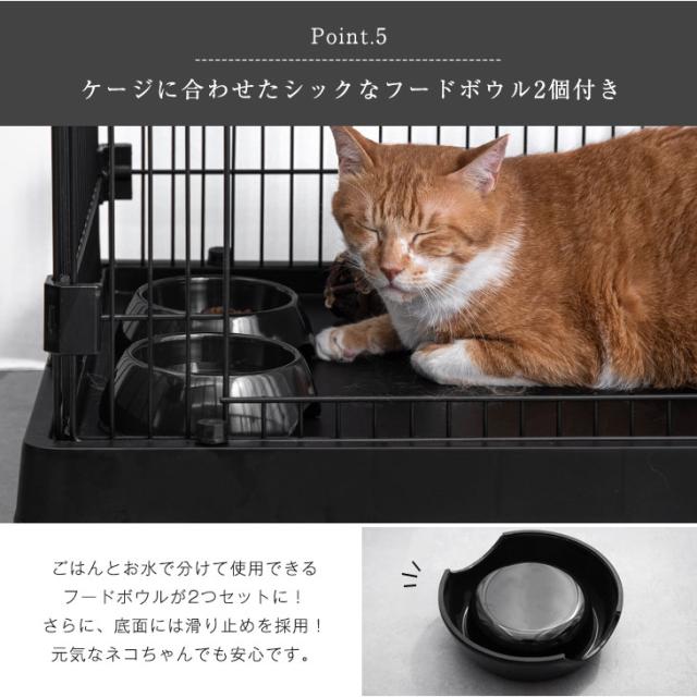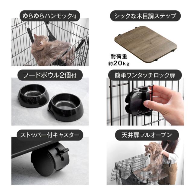 キャットケージ ブラック クリアボウル付 2段 ハンモック キャスター フードボウル ステップ台 付き 猫ケージ キャット 脱走防止 2匹 多頭 多頭飼い 猫用ケージ キャットゲージ ペットケージ ねこ ネコ