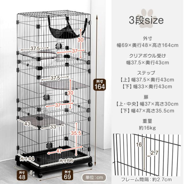 - 子猫用に購入しました コンパクトサイズで丁度良く、大満足です。 ただ、組み立てが…ゲージの連結部分が、なかなか上手くいかず、2人がかりでどうにか完成しました!