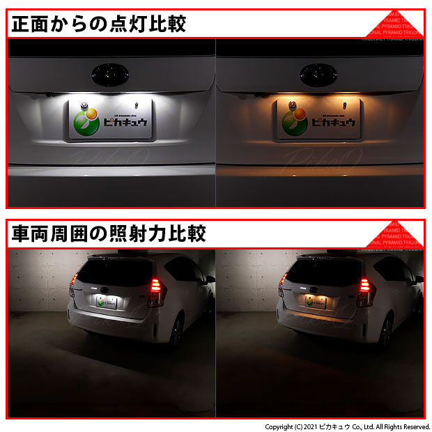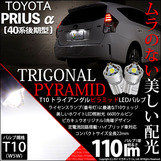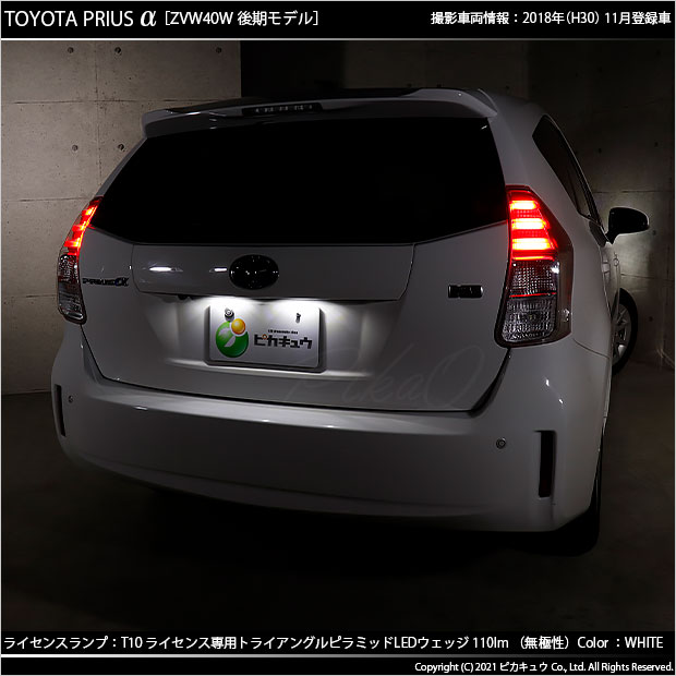 ピカキュウ,LED専門店,LEDバルブ,LED,SMD,T10,W5W,ライセンスランプ専用,ナンバー灯専用,番号灯,ホワイト,トヨタ,40系プリウスアルファ,プリウスα,TOYOTA,PRIUSα,ZVW40W,ZVW41W,後期