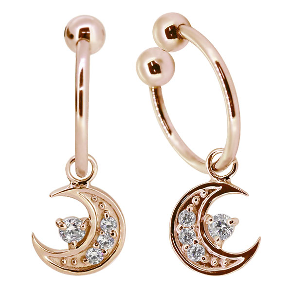 イヤリング 月 揺れる ダイヤモンド 4月誕生石 三日月 フープ ノンホールピアス 10k 両耳用