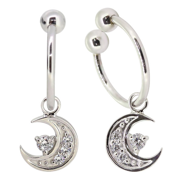 イヤーカフ レディース 揺れる 月 イヤリング ダイヤモンド プラチナ 三日月 両耳用