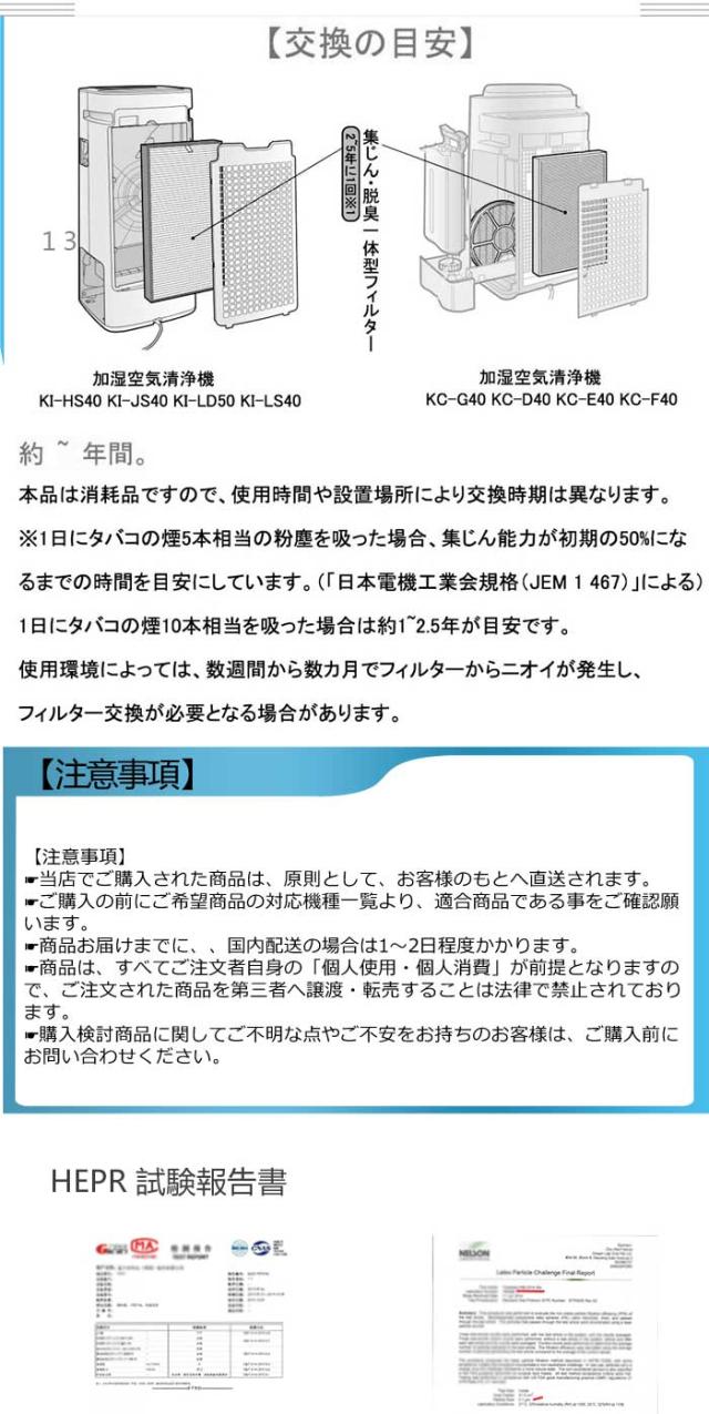 ● シャープ加湿空気清浄機 交換用 フィルターセット 対応型番: FZ-Y30SF と FZ-Z30MF 互換品「純正品同等」● 加湿フィルター FZ-Z30MF 当商品はFZ-Y30MFの代替品になります。交換の目安・約2年。水質、使用環境によっては交換時期が早くなることがあります。● 抗菌、防カビ方法: フィルターに抗菌・防カビ剤を含浸、トレイ内の雑菌・カビの繁殖を抑えます。● 集塵脱臭フィルター FZ-Y30SF 交換の目安・約2年。一般家庭で1日タバコ5本吸った場合(使用時間や設置場所により交換時期は異なります)。● 脱臭機能と集じん機能がひとつになったフィルターなので、交換が簡単に行えます。● 本品は消耗品です。使用環境によりフィルターの寿命が変化するため注意が必要。汚れが目立ち効果が落ちているようでしたら、速やかに交換することをおすすめいたします。