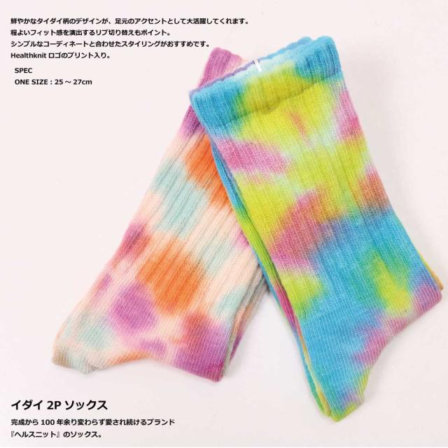 メール便発送 Healthknit ヘルスニット 靴下 タイダイ 2Pソックス メンズ 2足セット タイダイ柄 ソックス 191-3613