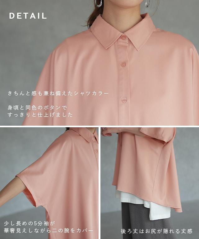 Yシャツ Y テールカット テールカットシャツ テールカットブラウス 裾ラウンド ラウンド裾 アシンメトリー 前後差 ドルマンスリーブ ドルマンスリーブシャツ ドルマンスリーブブラウス ドルマンシャツ ドルマンブラウス ドルマンシルエット フレアシャツ フレアブラウス バックフレア バックフレアシャツ バックフレアブラウス バックシャン バックコンシャス 半袖シャツ 半袖ブラウス 5分袖 5分袖シャツ 5分袖ブラウス 五分袖シャツ 五分袖ブラウス Vネック レギュラーカラー レギュラー レギュラーカラーシャツ レイヤード レイヤードシャツ 重ね着 羽織 羽織り はおり ビッグ ビック ビッグシルエット ビッグサイズ オーバーシルエット ドロップショルダー ボタン ボタンシャツ ボタンブラウス フォーマル お呼ばれ 楽 らくちん らく 楽ちん リラックス ゆるカジ ゆるい ゆるファッション ゆったり ゆる レディースファッション こなれ オフィスカジュアル 通勤 ゆったりサイズ ゆる すっきり カジュアル ナチュラル ベーシック モード テレワーク リモートワーク リモート オンライン飲み会 着回し 二次会 結婚式 大人 大人カジュアル オトナ 女性 綺麗 きれい キレイ キレイめ 高見え 上質 上品 ホワイト 白色 ブラック 黒色 ピンクベージュ ベージュ ピンク エクリュ エクル グリーンティー グリーン カーキ オリーブ 緑 緑色 深緑 フリーサイズ フリー S M L LL 2L XL 3L XXL LLL 20代 30代 40代 50代 おしゃれ 母の日 春夏 春 夏 秋冬 秋 冬 お洒落 オシャレ かわいい 可愛い カワイイ HUGU ハグユー はぐゆー UV対策 日焼け対策 紫外線対策 冷房対策