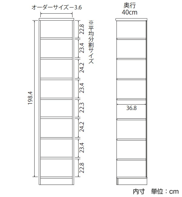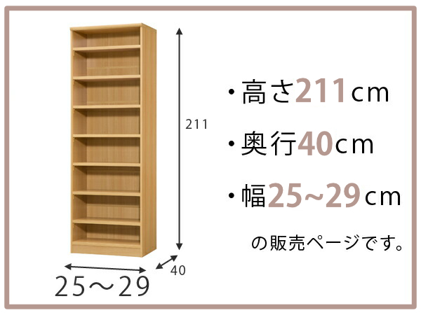 オーダー本棚 標準棚板タイプ 幅25-29cm 奥行40cm 高さ211cm ( 収納棚 書棚 本棚 オーダー ラック 壁面収納 書庫 日本製 オーダーメイド 文庫本 コミック フリーラック )