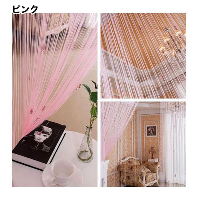 ストリングカーテン ひものれん のれん ひも 紐暖簾 紐のれん ロング モチーフ付き ビーズ付き インテリア 北欧 おしゃれ かわいい 送料無料