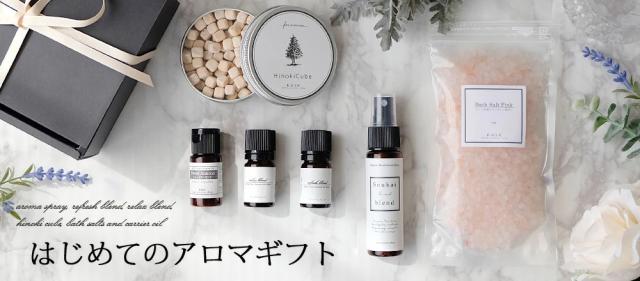 初めての方向けにアロマオイルやアロマスプレー、ひのきキューブなどをセット。ギフトやプレゼントにぴったり!