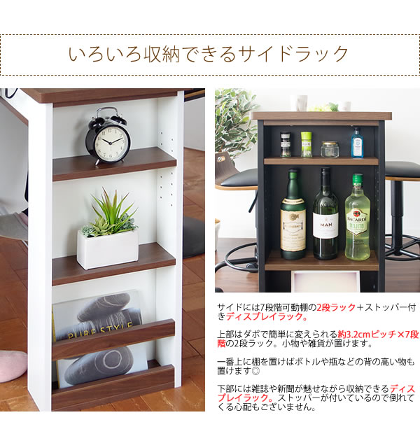 ラックは左右どちらにでも取り付け可能。テーブルは対面使いにも壁面カウンターにもお使いいただけます。