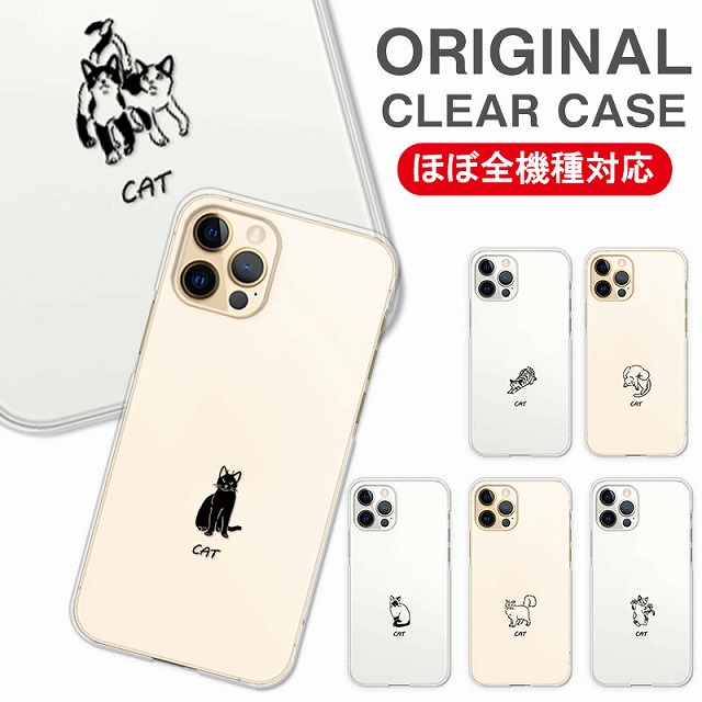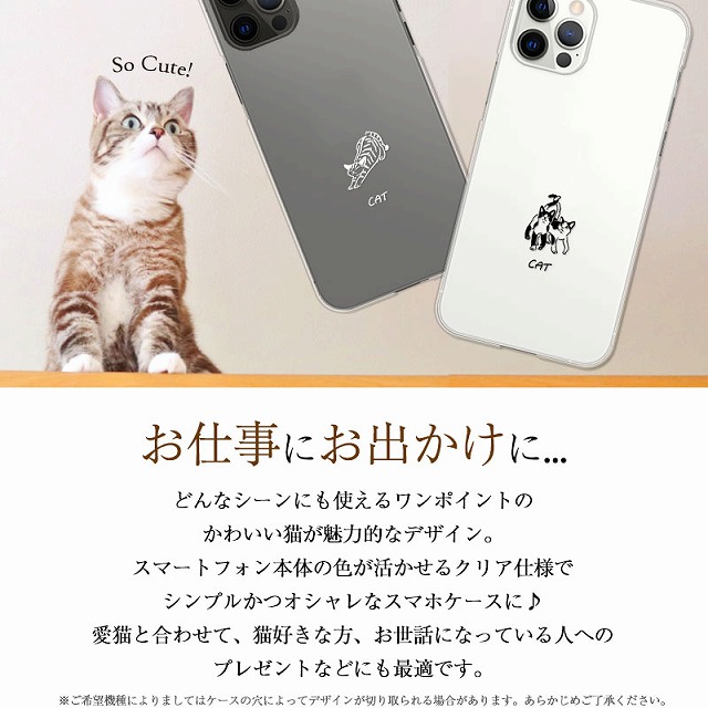 スマホケース ネコ ワンポイント クリア ハードケース スマホカバー 猫 Redmi Note 13Pro XIG05 iPhone17 iPhone16e Xperia 10VII AQUOS sense9 sense8 Galaxy S25 A55 arrowsWe2 OPPO A54 BASIO active3 Pixel9a Pixel7a Pixel8a ピクセル9 マモリーノ 即納 送料無料