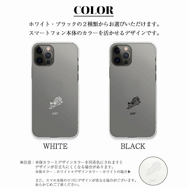 可愛いネコを線画で描いたシンプルなデザインのスマホ本体のカラーが活かせるスマホケースです