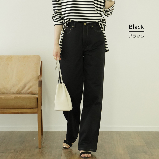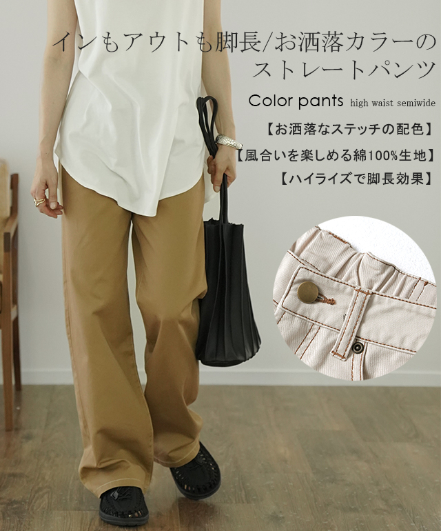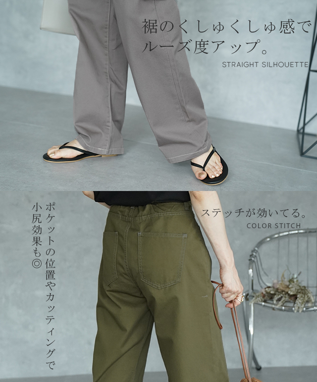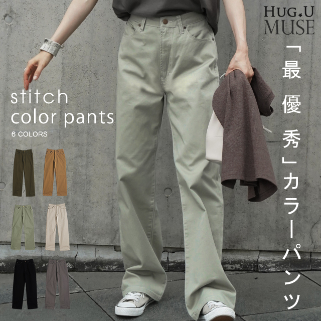 「くすみカラーパンツ」深め股上&映えステッチ 大人MUSE パンツ レディース ワイドパンツ ワイド カラーパンツ カラー ボトム 体型カバー ゆったり ハイウエスト ストレートパンツ 大きいサイズ 黒 白 冬 秋 秋新作