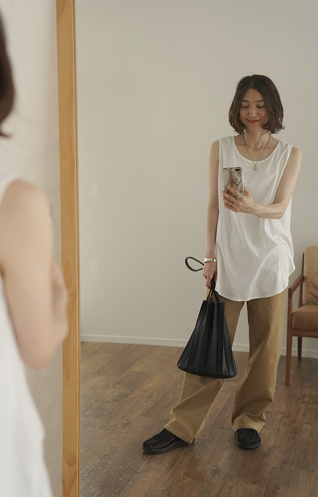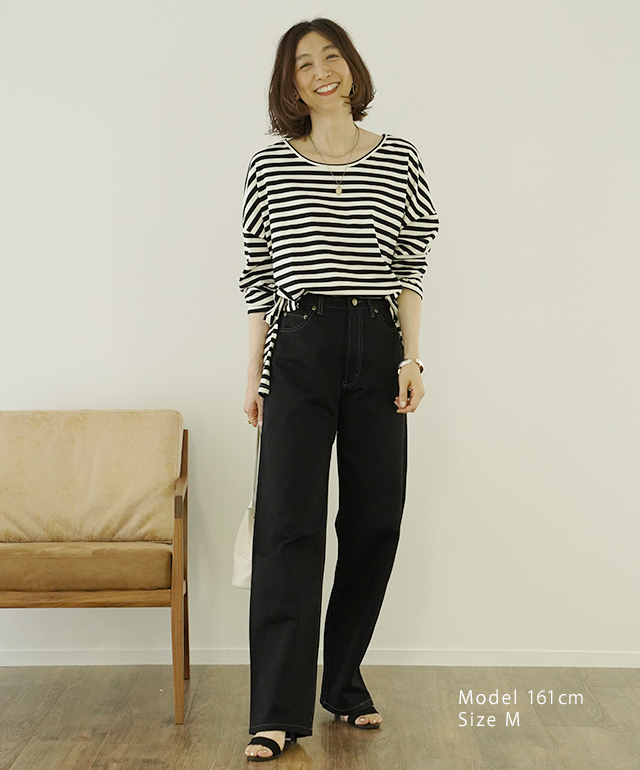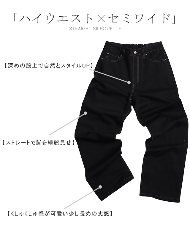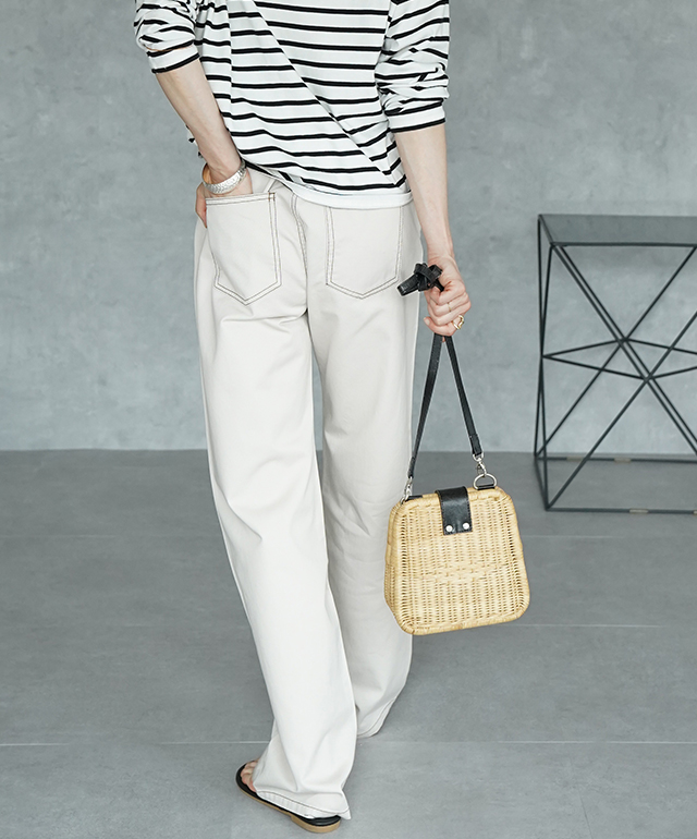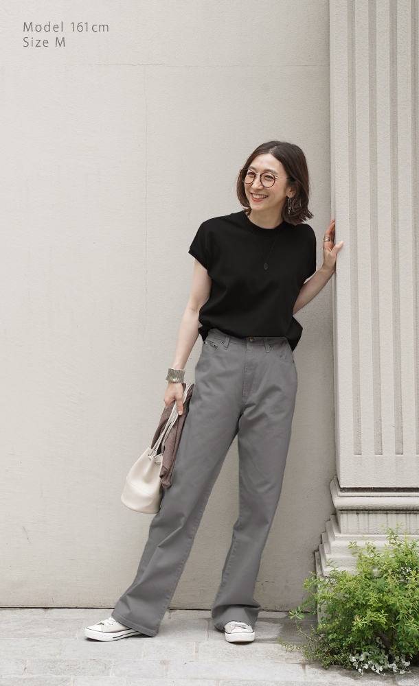 ハイウエストの仕立てでバランスのとりやすいシルエットです。