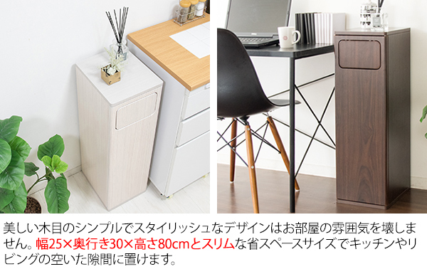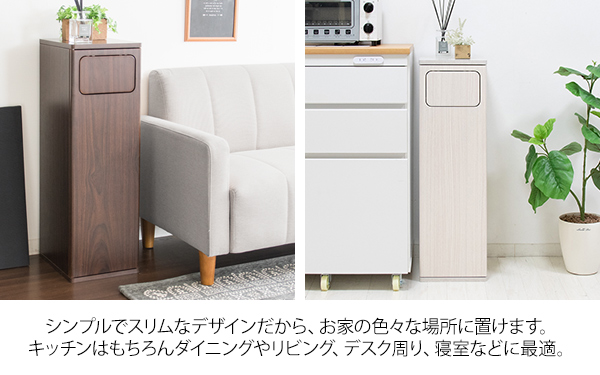 幅25cmとスリムタイプなので省スペースでキッチンやカウンターの隙間に置けます。場所を選ばないデザインでリビングやデスク、寝室にも最適。