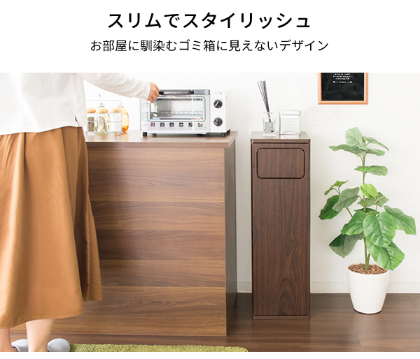 ダストボックス 木製プッシュ式ダストボックス ダストボックス 大容量45L 45リットル ゴミ箱 ごみ箱 ゴミ箱ラック くず入れ 幅25cm スリム 省スペース Empro(エンプロー)