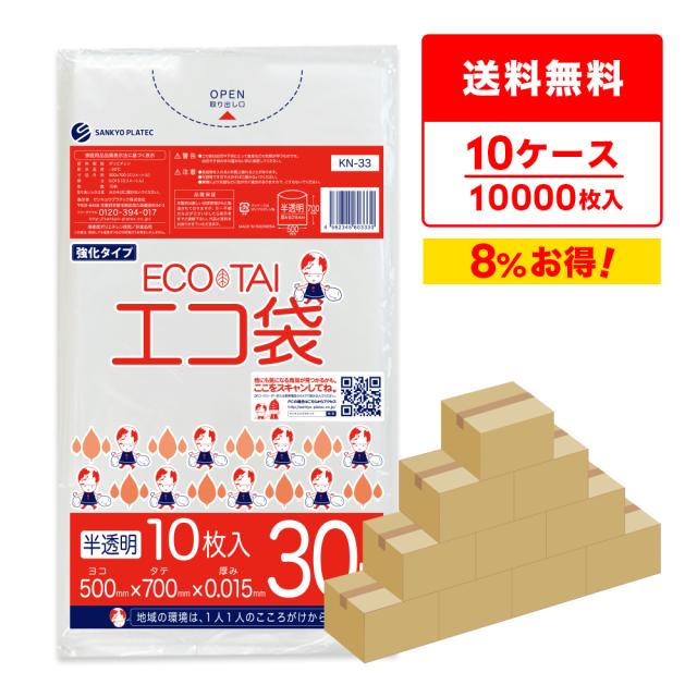 ポリ袋 ゴミ袋 30リットル 薄手 半透明 50x70cm 0.015mm厚 10枚x100冊x10箱 KN-33-10 /ごみ袋 袋 中型 30l ナチュラル 送料無料