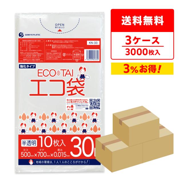 ポリ袋 ゴミ袋 30リットル 薄手 半透明 50x70cm 0.015mm厚 10枚x100冊x3箱 KN-33-3 /ごみ袋 袋 中型 30l ナチュラル 送料無料