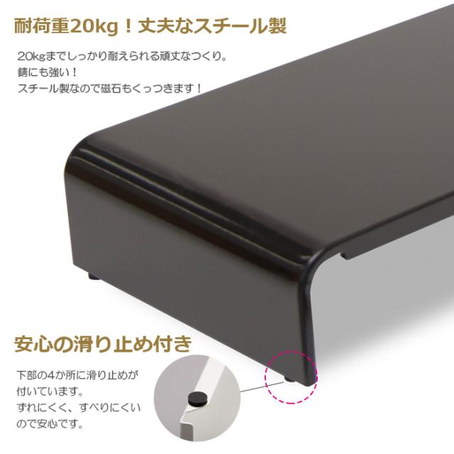 ラック 卓上 机上 収納ラック モニター台 幅 80cm 奥行 22cm 耐荷重 20kg スチール製 ホワイト ブラック 収納 おしゃれ PCラック W80×D22×H8.2cm PCR-80 (R) 黒 白 black white サビに強い