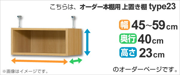 専用 上置き棚 標準棚板 type23 オーダー本棚 奥行40cm 幅45-59cm用 ( オーダーメイド 天井つっぱり 本棚 収納ラック セミオーダー )