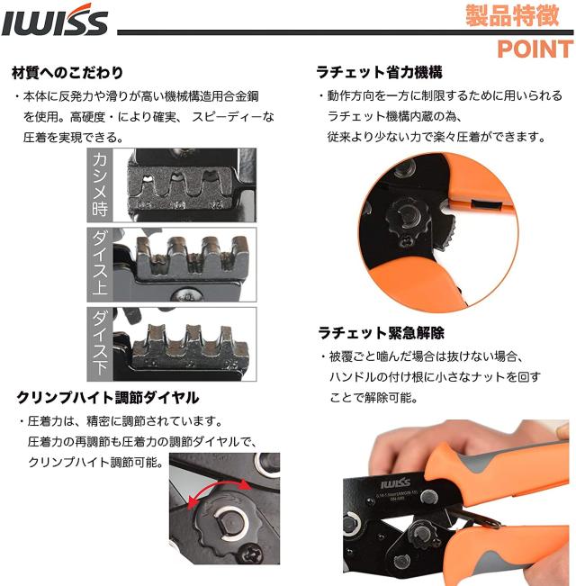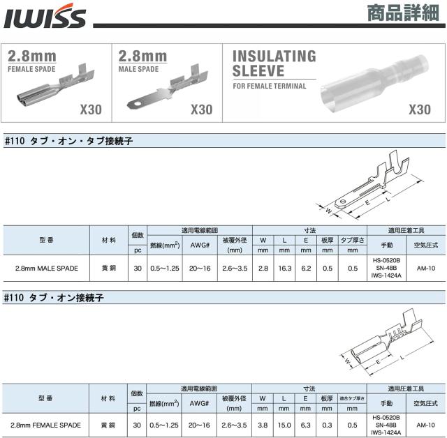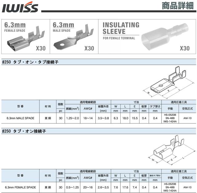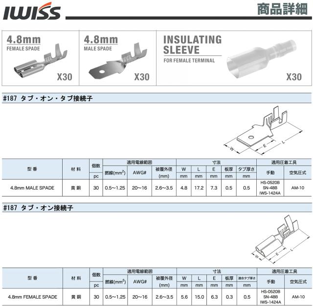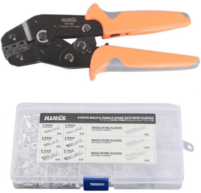 IWISS 平型端子 スリーブ オス・メス 計270点 配線作業に オープンパレル端子 同時圧着ペンチ SN-48B + 270KIT