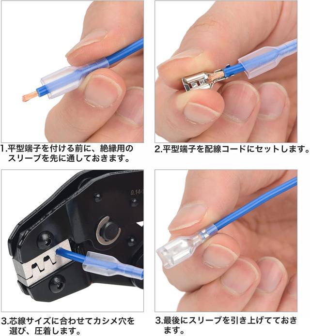 平型端子 絶縁スリーブ 3サイズセットと圧着ペンチSN-48Bのセット商品です。