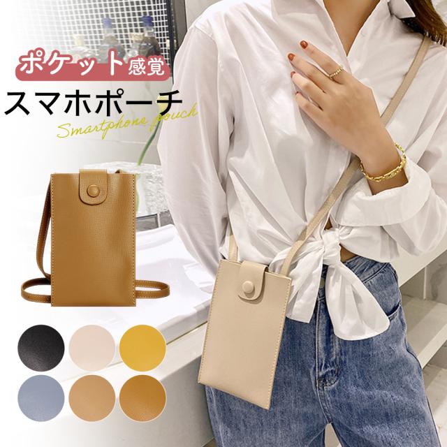 スマホポーチ パスケース ショルダー ポシェットシンプル 可愛い 携帯 スマートフォン ICカード 乗車券 定期券 6色 おしゃれ agesugi_sfa