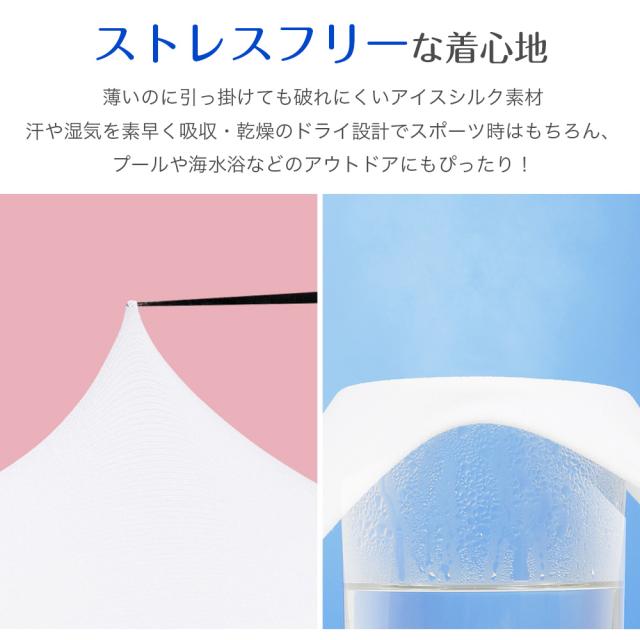 装着した瞬間からひんやり涼しいアイスシルク素材で、夏のアウトドアにも最適