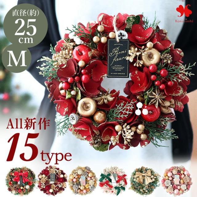 2025 クリスマス リース M 直径約23.5〜25cm 玄関 ドア クリスマスリース 玄関用 玄関ドア 壁掛け おしゃれ プレゼント お誕生日 誕生日 結婚祝い お祝い 花 お花 発表会 ギフト 女性 マンション 退職祝い 開店祝い お歳暮 飾り 【11/1〜お届けOK】