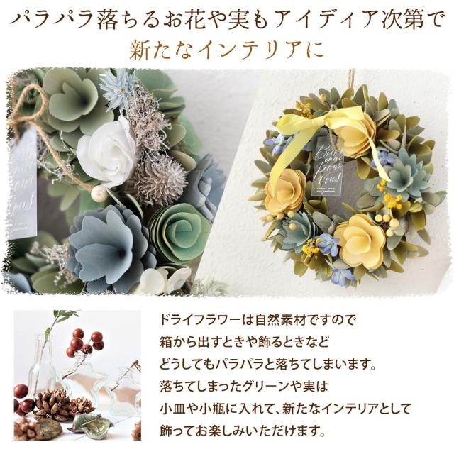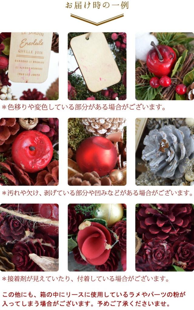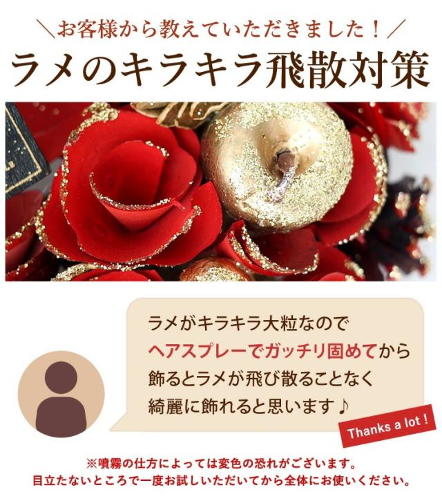 - デザインが素敵で購入しましたが、同じ値段でもっと丁寧な作りのリースは沢山売っているなと思います。 発泡スチロールの部品が欠けて禿げていたりしました。返品も面倒で、沢山箱に落ちてたラメでリカバリーして見...