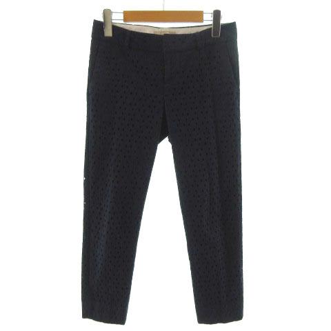【中古】バナナリパブリック BANANA REPUBLIC パンツ 七分丈 コットン 総レース ネイビー 紺 0 レディース