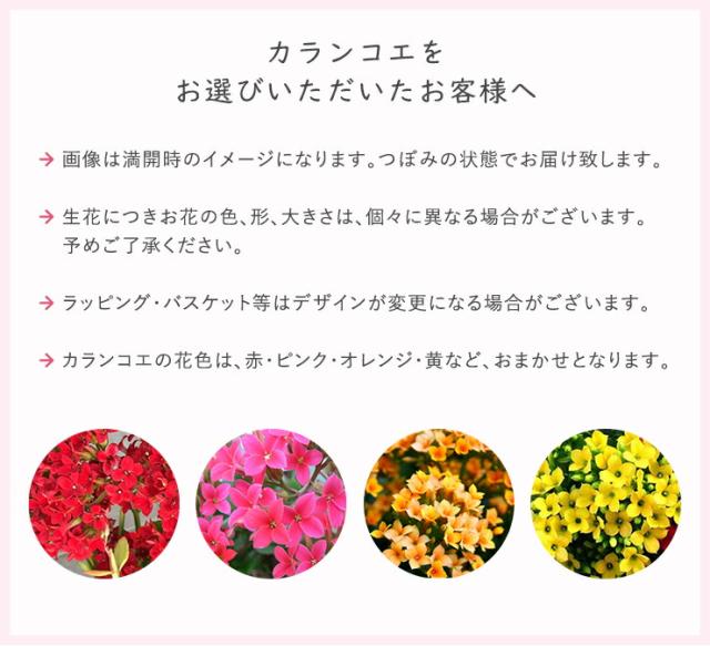 ※カランコエの花色は、レッド系、ピンク系、オレンジ系、イエロー系のおまかせになります。