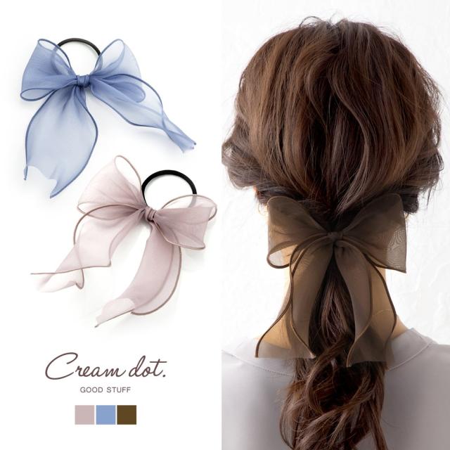 透け感のあるエアリー生地のリボンヘアゴム。