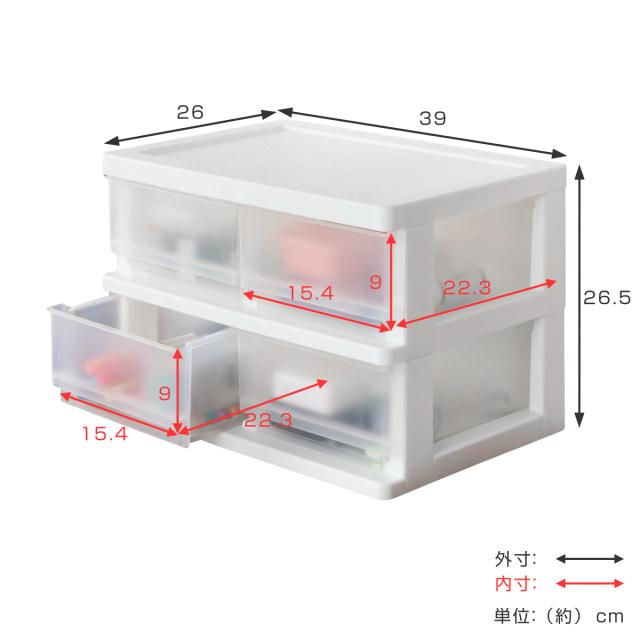 収納ボックス コワケース 2段 卓上 引き出し H4 ( カラーボックス インナーボックス 収納ケース 収納 小物収納 幅39 小物入れ 小物ケース フルサイズ カラーボックス用 プラスチック 収納用品 )